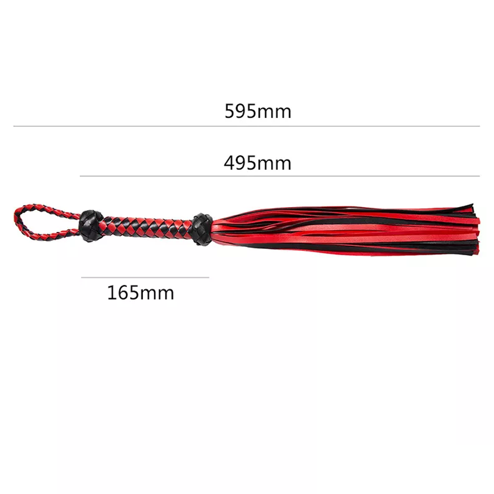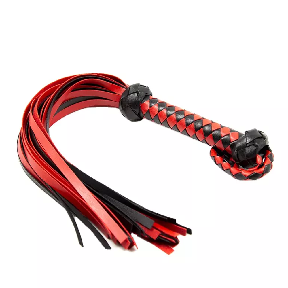 The Bloodlust Whip is a bigger, stylised flogger for those who are looking for a heavier impact. The red and black vegan leather give this whip its bloody flair which will be sure to instill obedience in your sub.