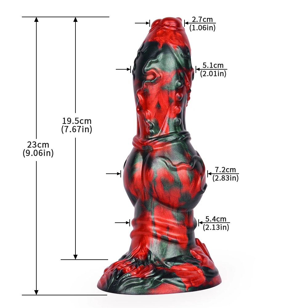 The Bloodsnarl Dildo embodies the ferocity of a beast driven by instinct and hunger. Its thick shaft is shaped for deep and relentless pressure, leading into a wide swollen knot that delivers a powerful stretch and a locked in sensation that leaves no doubt who is in control. Every curve and ridge is designed to heighten pleasure and build excitement with every thrust. Finished in a blend of dark crimson and black, the Bloodsnarl is made to dominate and devour, perfect for those ready to be claimed by the hound.