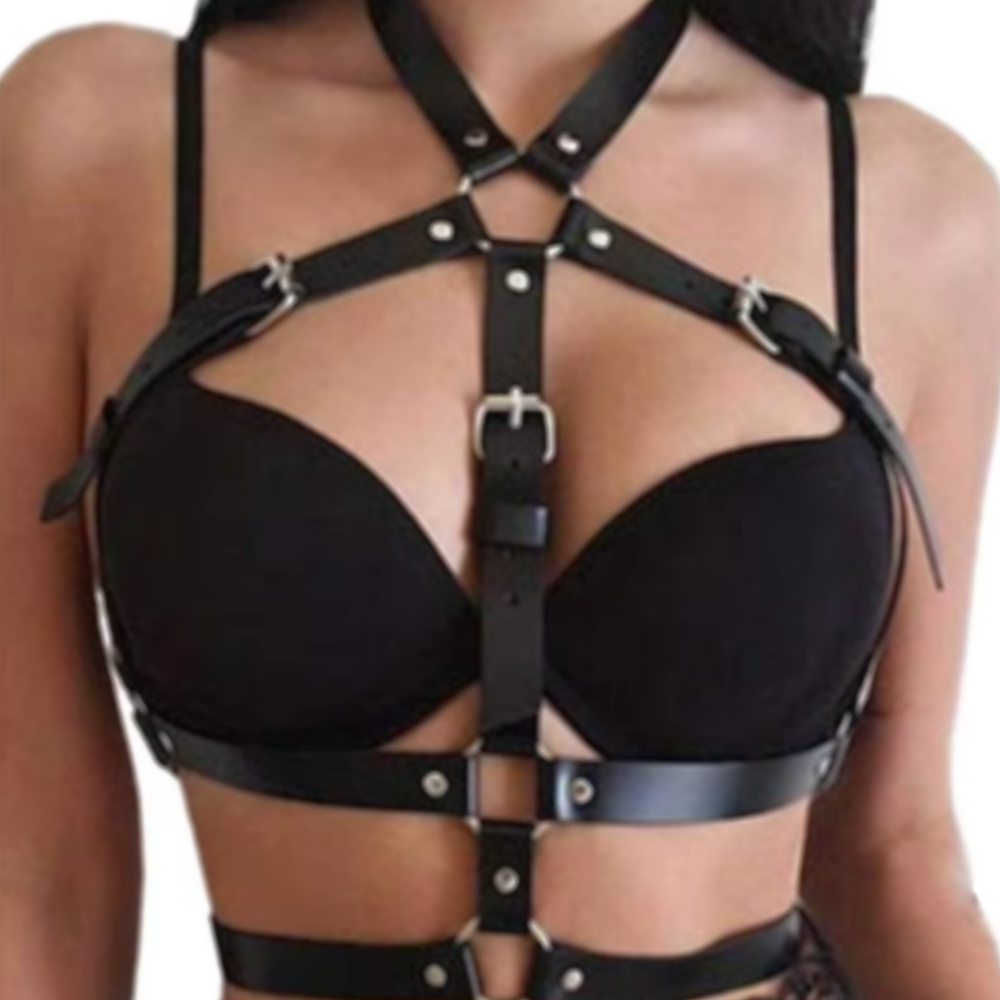 Our Femdom Strap Harness is a great accessory, perfect for adding an extra touch of BDSM flair to your outfits. The harness can be worn by itself or over lingerie, and the straps are adjustable