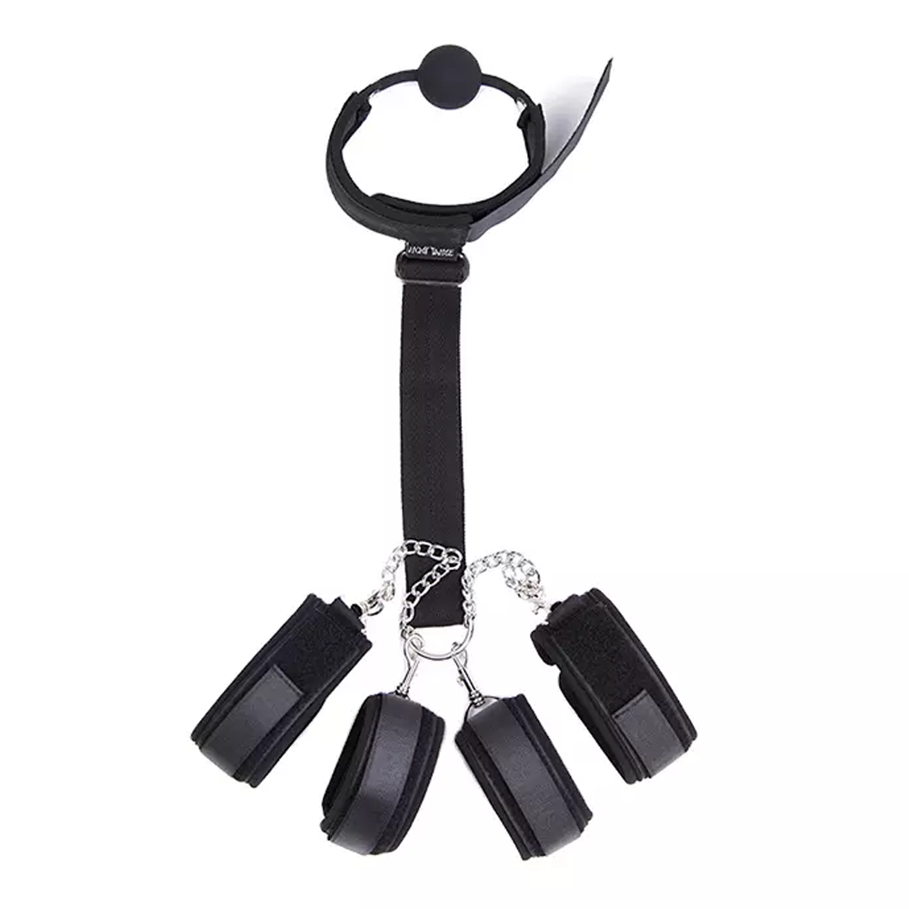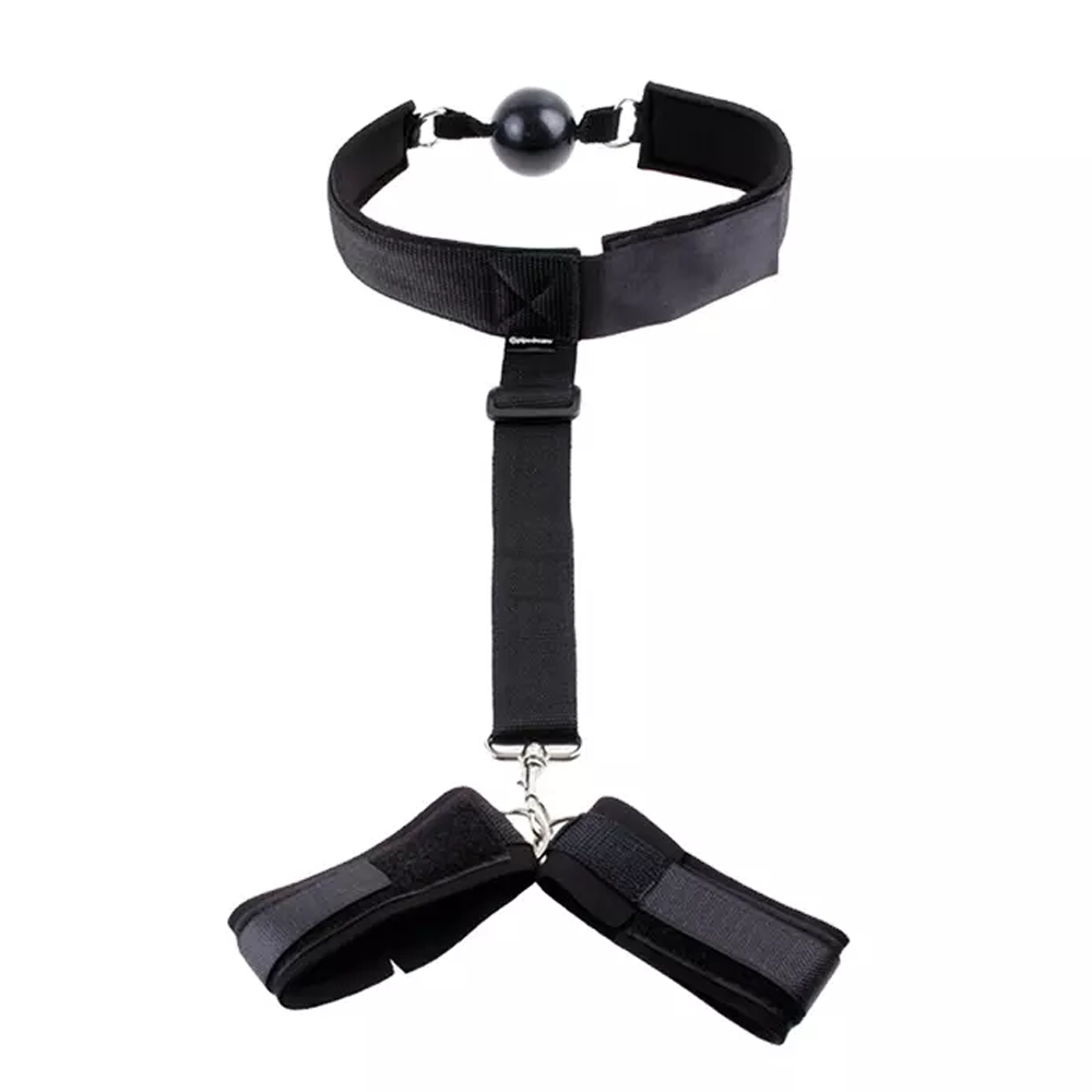 Restrain your partner with the Gagged and Cuffed Restraint System. Featuring adjustable wrist straps and integrated ball gag, you will be in total control within the bedroom. The back attachment strap is fully adjustable allowing you to adjust to your partners dimensions and allow you to comfortably position the arm restraints.