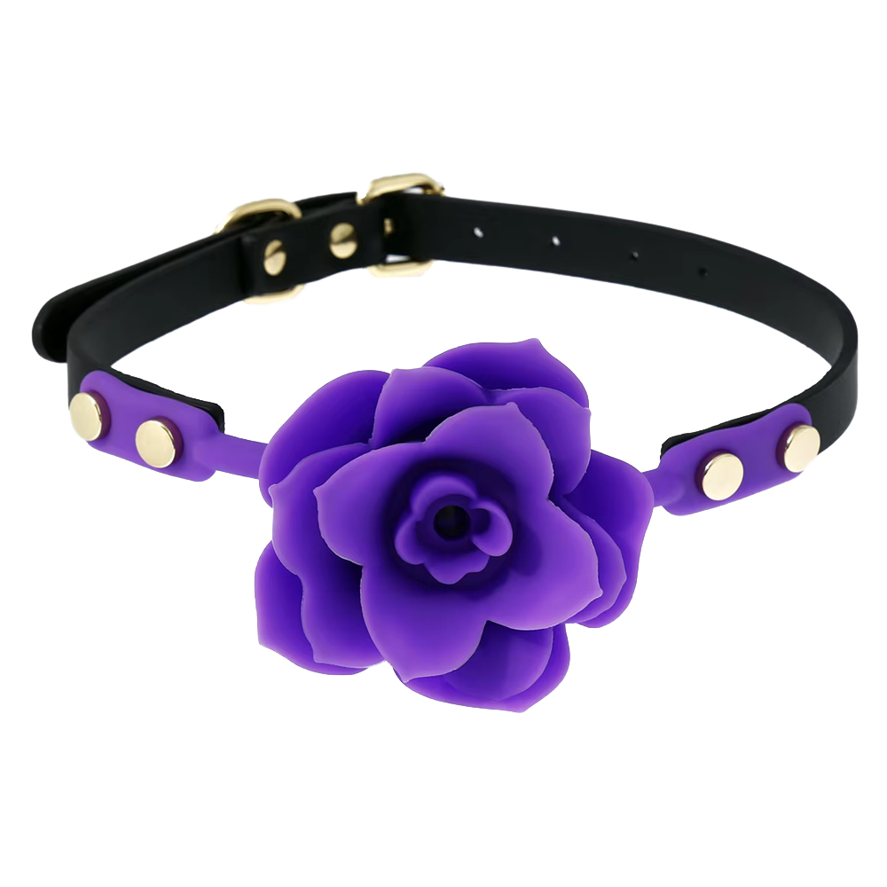 The Silent Rose Gag is an elegant way to keep your sub quiet. The gag component is made from silicone, giving your sub something tooth friendly to bite down on. The strap component is made from vegan leather and is easily adjustable, allowing you to get a comfortable yet firm fit.