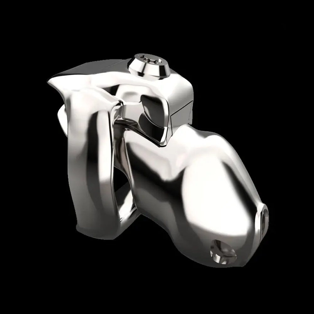 Our Top Lock Steel Chastity Cage is the perfect chastity cage for someone who wants to be locked up extra tight in cold steel. It comes with an ergonomic base ring that the cage attaches to for extra comfort. This cage features a unique and convenient locking system, using a button at the top of the cage to lock the cage. There is also an open hole at the tip, making it suitable for long-term wear as you can go to the bathroom while locked up and clean yourself with ease.