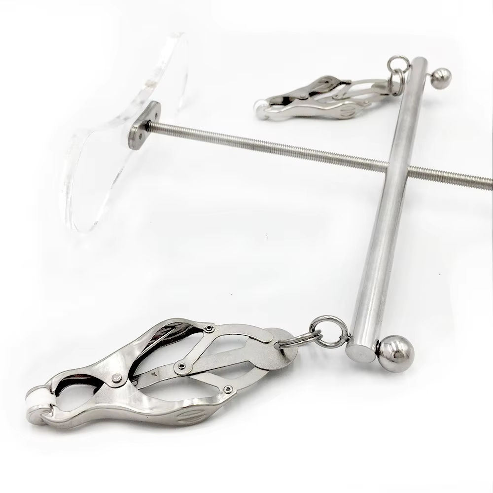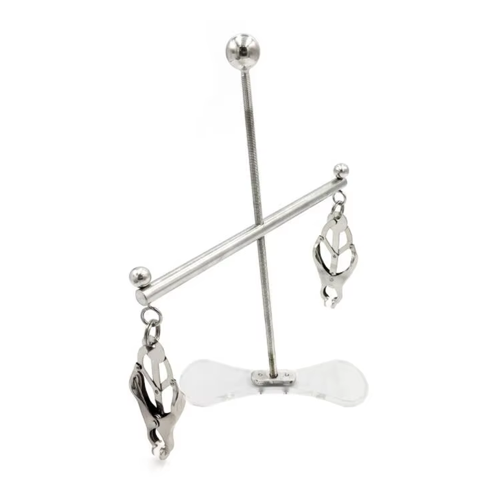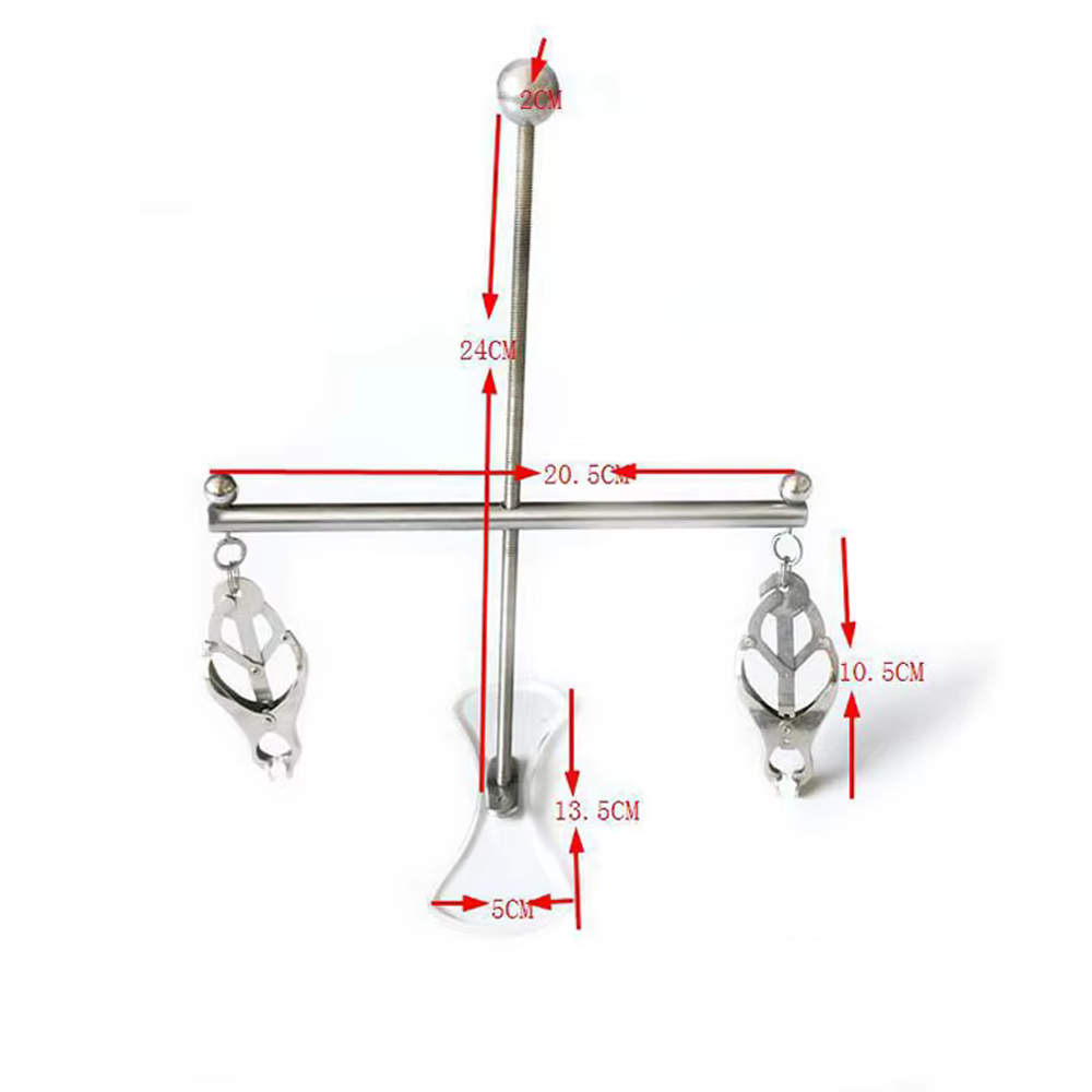 The Tower of Pain is perfect for enthusiasts looking to intensify their nipple play. By rotating the ball, the nipple clamp bar rises and strengthens the pull of the clover clamps. Whoever is trapped in the Tower of Pain will watch in anticipation whenever they see their master's hand reach for the ball.